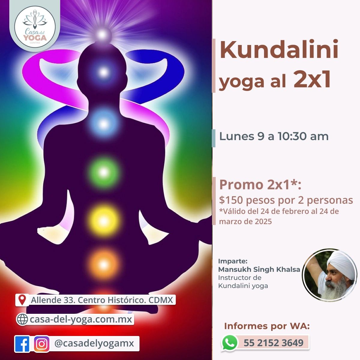 Mayores informes por WhatsApp: https://bit.ly/WhatsAppCasadelYoga